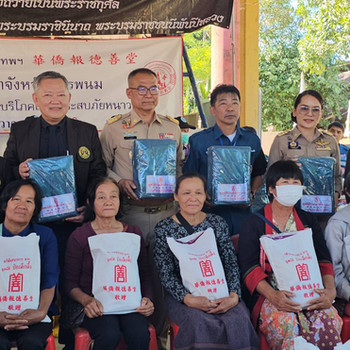 "ป่อเต็กตึ๊ง" ผนึก "พ่อค้านครพนม" ปูพรมมอบไออุ่น แจกผ้าห่ม 1,000 ชุด คลายทุกข์ชาวนครพนม ถวายเป็นพระราชกุศลฯ