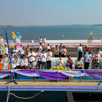 ประชาชนเมืองน้ำดำร่วมพิธีใหญ่กลางเขื่อนลำปาว จ.กาฬสินธุ์ ตื่นตา "สมมาน้ำบูชาปู่เชียงโสม"
